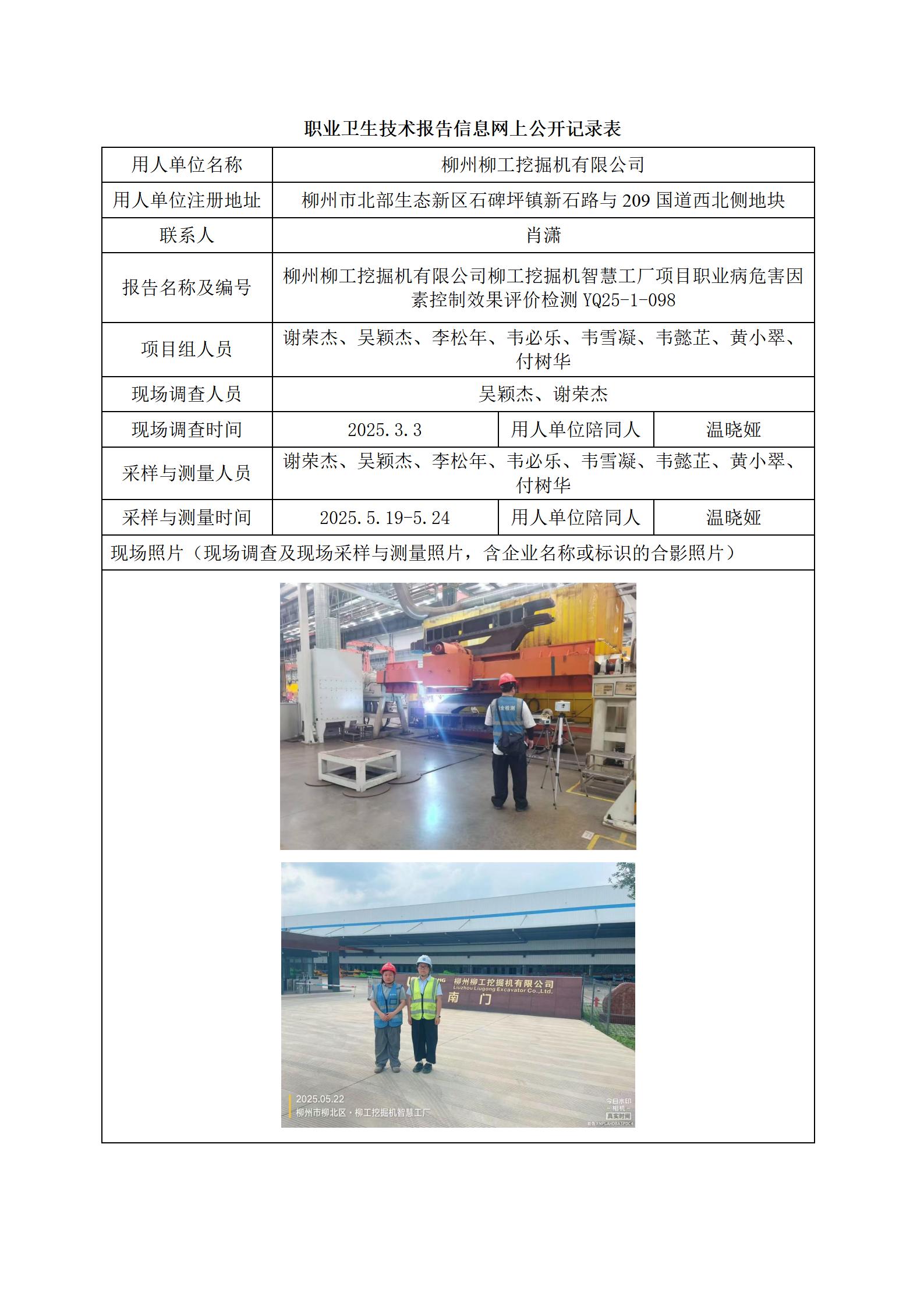 柳州柳工挖掘機(jī)有限公司柳工挖掘機(jī)智慧工廠項(xiàng)目職業(yè)病危害因素控制效果評(píng)價(jià)檢測(cè)報(bào)告