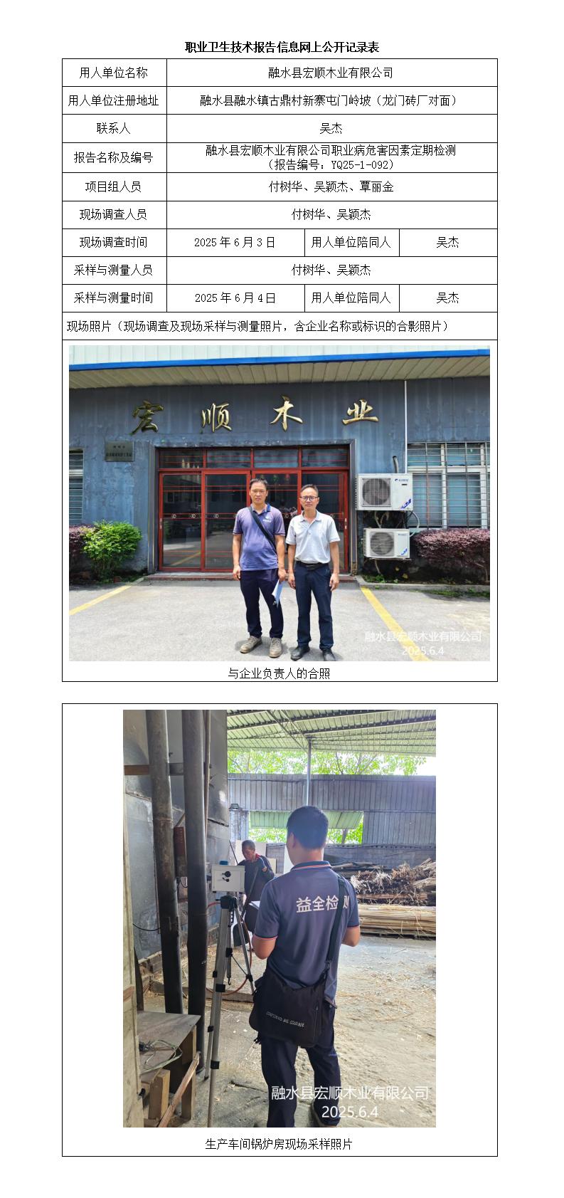 融水縣宏順木業(yè)有限公司職業(yè)病危害因素定期檢測報告