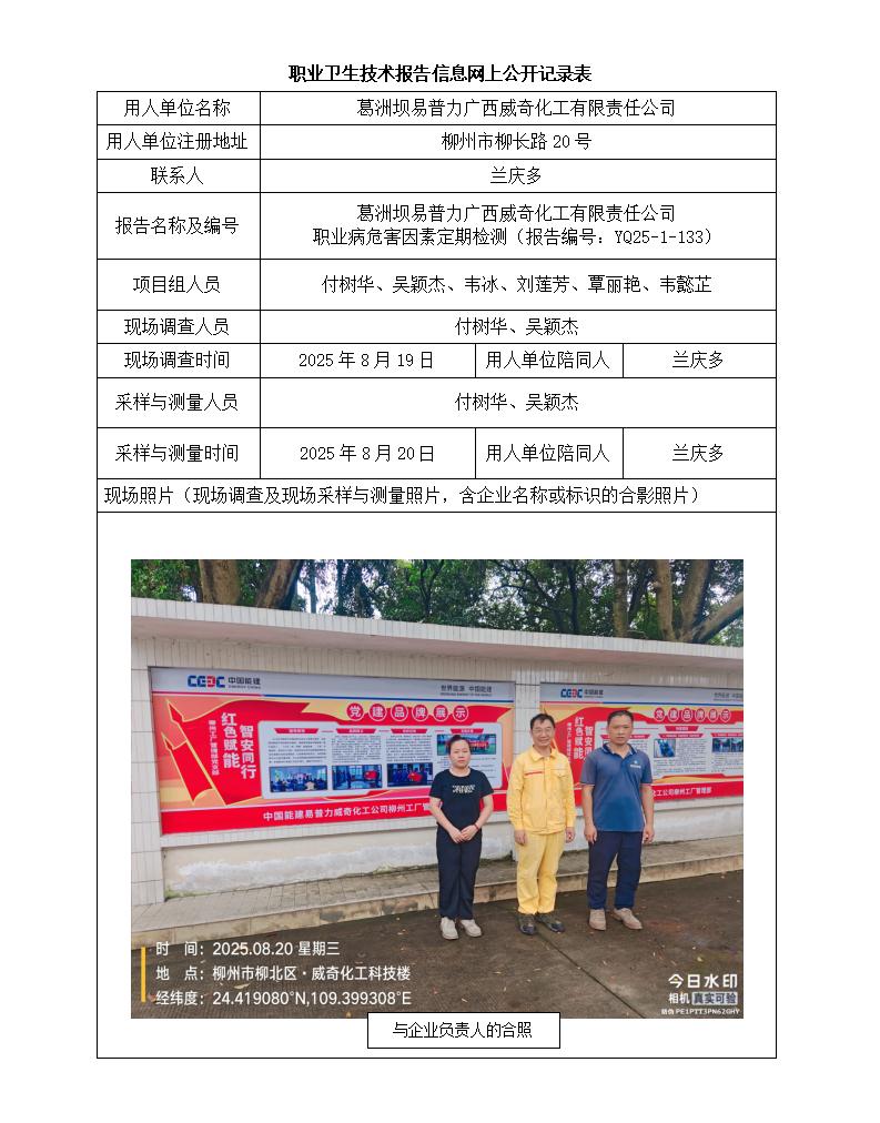 葛洲壩易普力廣西威奇化工有限責(zé)任公司 職業(yè)病危害因素定期檢測報(bào)告